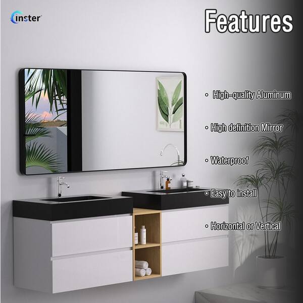 TUNE 60 in. W x 28 in. H Rectangular Black Framed Wall Mount Bathroom Vanity Mirror