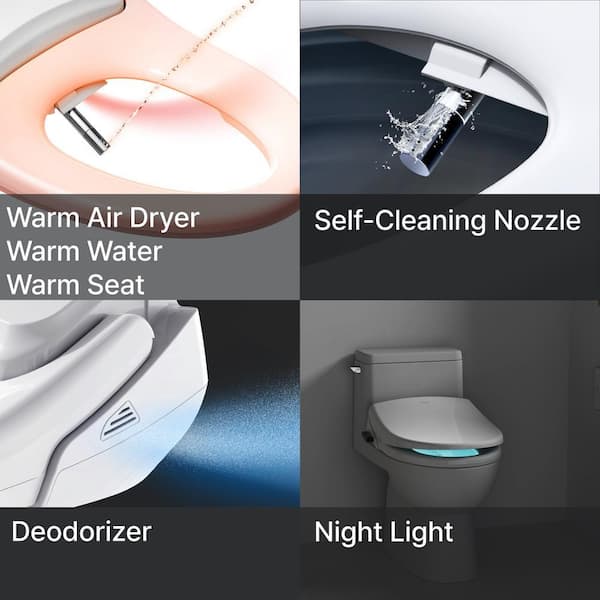 Electric Bidet Seat for Elongated Toilets, Deodorizer, Stainless Nozzle, Night Light, Soft Close, Heated Seat in White