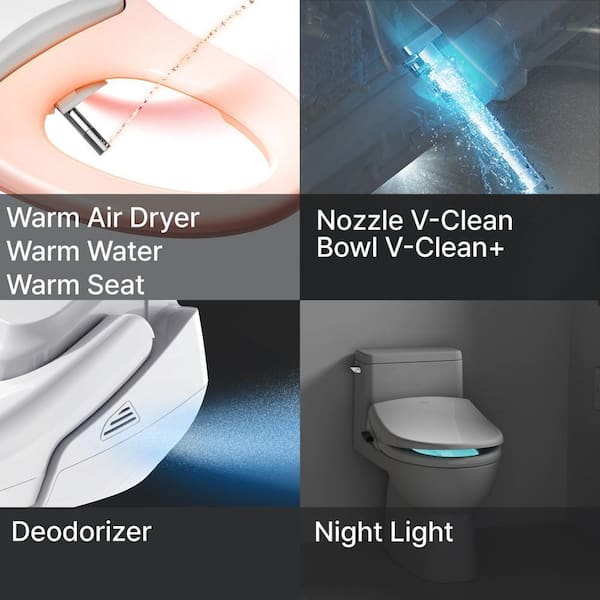 V-Clean Electric Bidet Seat for Elongated Toilets with Deodorizer, Stainless Nozzle, Night Light, Soft Close in White