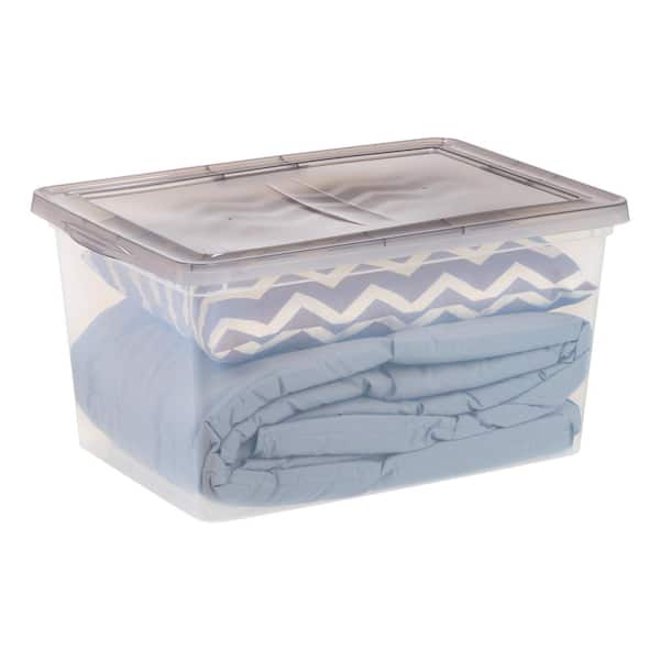 58 Qt. Snap Top Plastic Storage Box, Clear with Gray Lid