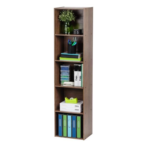 66.14 in. Brown Faux Wood 5-shelf Standard Bookcase with Doors