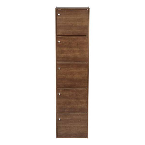 66.14 in. Brown Faux Wood 5-shelf Standard Bookcase with Doors
