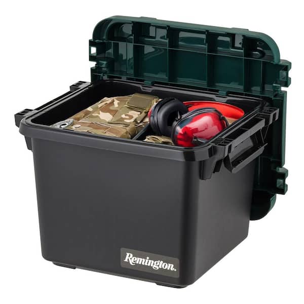 7.5 Gal. Remington Heavy Duty Trail Box, Stackable Storage Bin with Latching Lids, Black, (4-Pack)