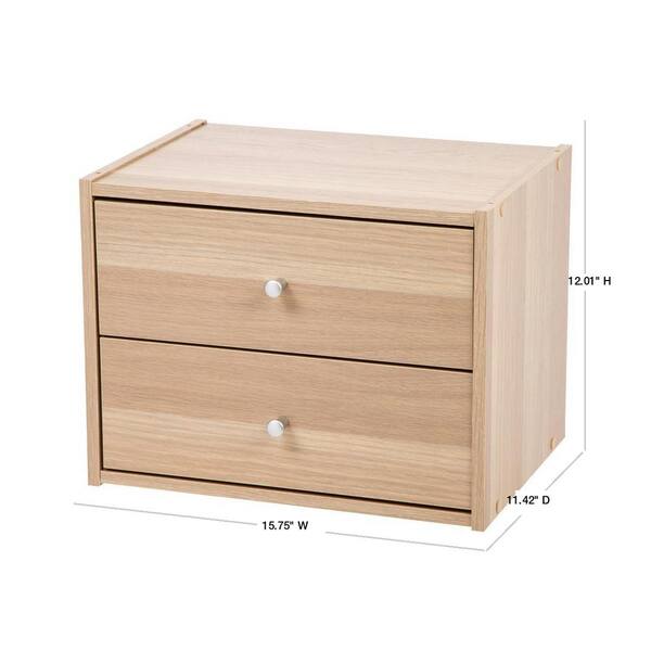 TACHI Light Brown Modular Wood Stacking Storage Box with Drawer