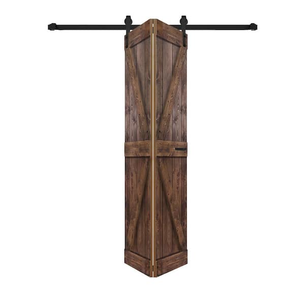 K Series 42 in. x 80 in. (21 in. x 80 in. x 2-Panels) Dark Walnut Solid Wood Bi-Fold Door Hardware Kit-Assembly Need