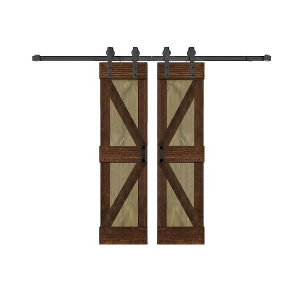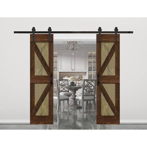 K Series 48 in. x 84 in. Aged Barrel/Kona Coffee Finished DIY Solid Wood Double Sliding Barn Door With Hardware Kit