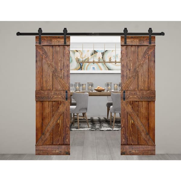 K Series 48 in. x 84 in. Carrington Finished DIY Solid Wood Double Sliding Barn Door with Hardware Kit