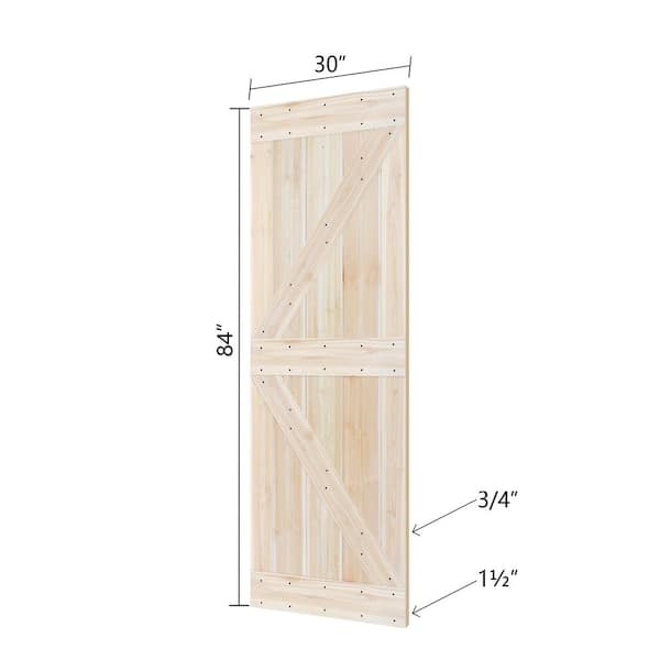 K Series 60 in. x 84 in. Unfinished DIY Solid Wood Double Sliding Barn Door with Hardware Kit
