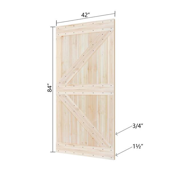 K Series 84 in. x 84 in. Unfinished Solid Wood Double Sliding Barn Door with Hardware Kit