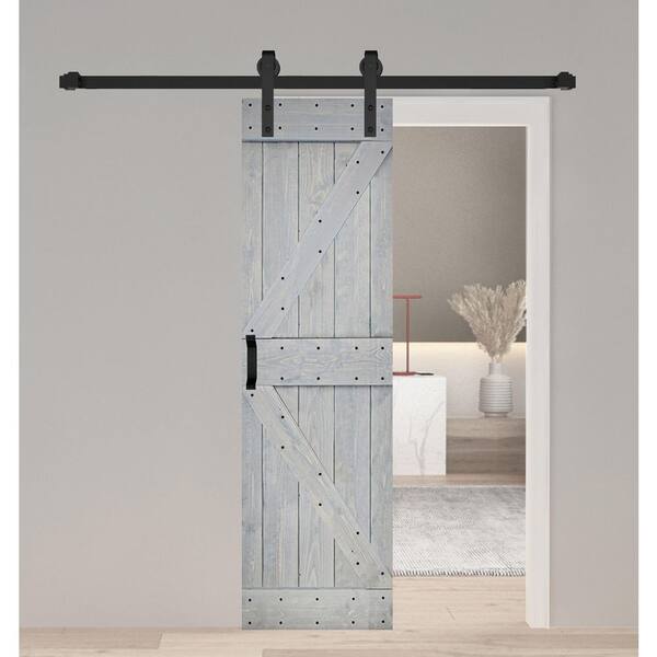 K Style 30 in. x 84 in. French Gray Finished Soild Wood Sliding Barn Door with Hardware Kit - Assembly Needed