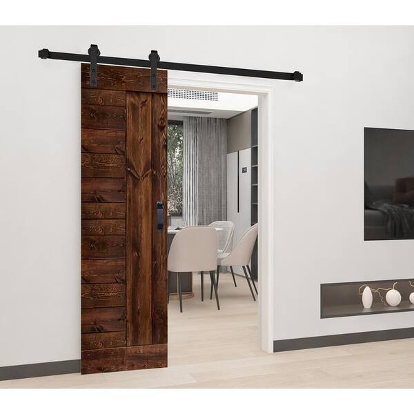 L Series 24 in. x 84 in. Kona Coffee Finished Solid Wood Sliding Barn Door with Hardware Kit - Assembly Needed