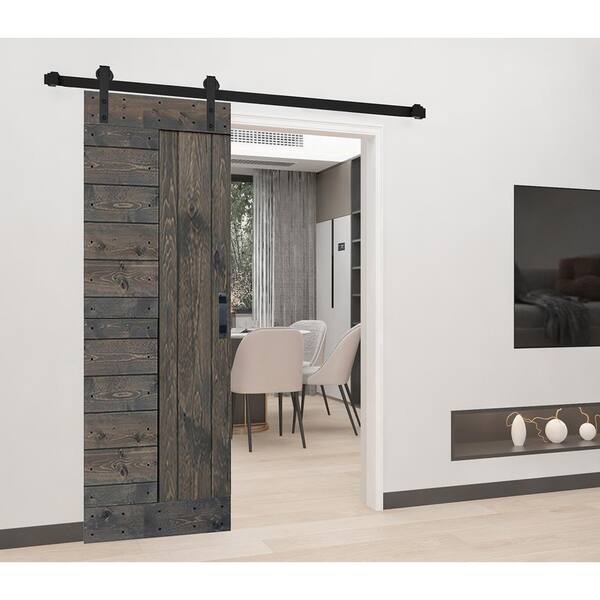 L Series 30 in. x 84 in. Smoky Gray Finished Solid Wood Sliding Barn Door with Hardware Kit - Assembly Needed
