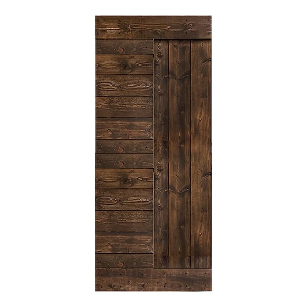 L Series 38 in. x 84 in. Kona Coffee Finished Solid Wood Barn Door Slab - Hardware Kit Not Included