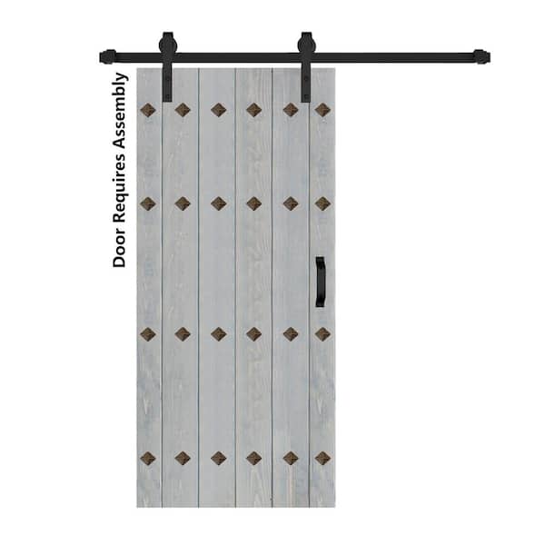 Mid-Century New Style 38 in. x 84 in. French Gray Finished Solid Wood Sliding Barn Door with Hardware Kit