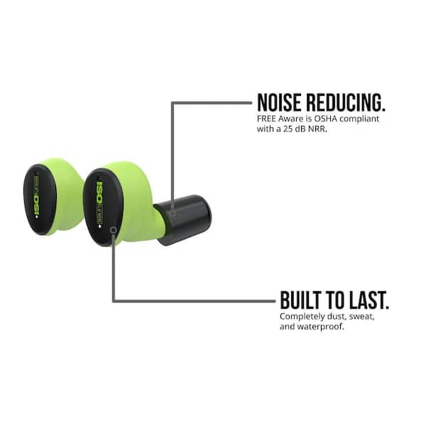 FREE Aware Green Bluetooth Hearing Protection Earbuds, 25 dB Noise Reduction Rating, OSHA Compliant Ear Protection