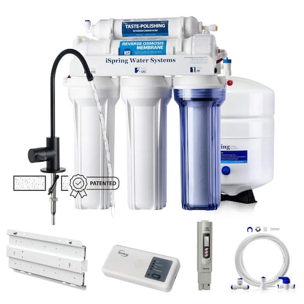 RCC7-BLK 5-Stage Under Sink Reverse Osmosis System w/ Mounting Bracket, Filter Life Reminder, TDS Meter, Ice Maker Kit