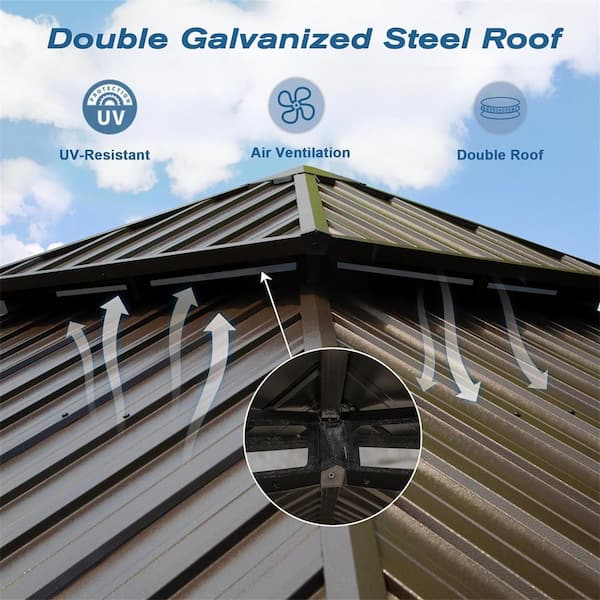 10 ft. x 14 ft. Brown Hardtop Gazebo Aluminum Metal Pop-Up Canopy with Galvanized Steel Double Roof Pavilion for Party