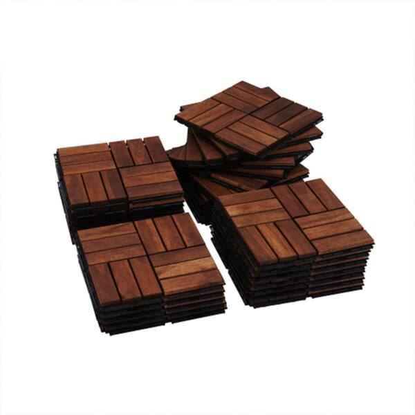 12 in. x 12 in. Square Light Gray Acacia Hardwood Outdoor Interlocking Deck Tiles Checkered Pattern (30-Pack)