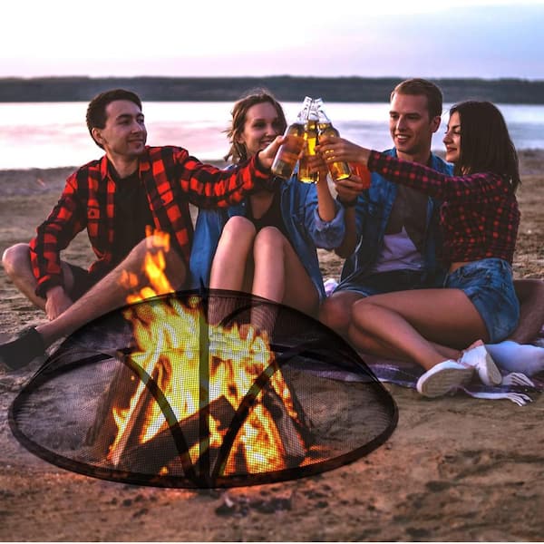 24 in. Outdoor Round Fire Pit Screen Cover, Reinforced Steel Ember Lid with Handle in Black