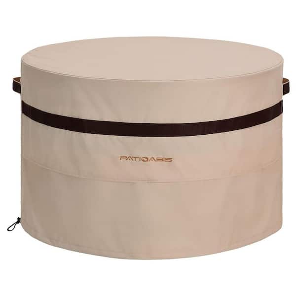 36 in. Round Fire Pit Cover Heavy Duty Waterproof Patio Gas Table Covers with Air Vent Dustproof, Beige