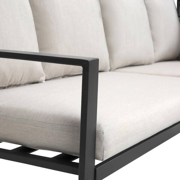 4 -Piece Outdoor Black Metal Patio Conversation Set, Sectional Sofa with Water Resistant Beige Cushions and Coffee Table