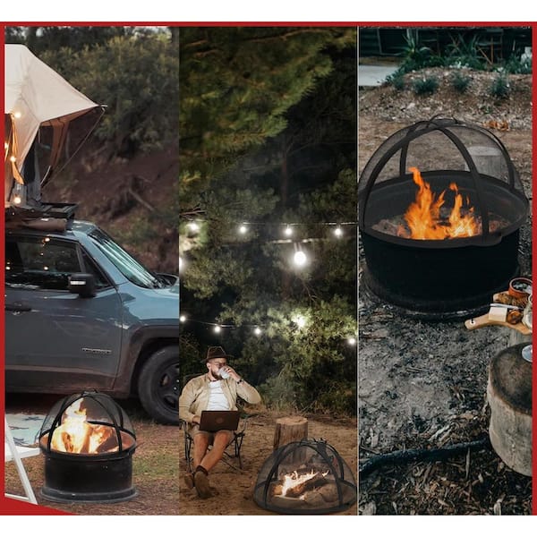 40 in. Round Fire Pit Spark Screen Cover Outdoor with Hinge and Patio Easy-Opening Fire Pit Screen Black