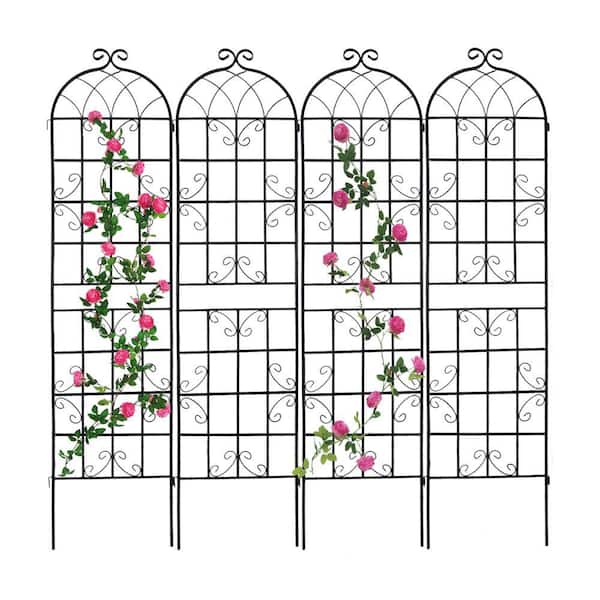 86.7 in. x 19.7 in. Black Metal Garden Trellis Rustproof Climbing Plants Outdoor Flower Support Wedding Décor (4-Pack)
