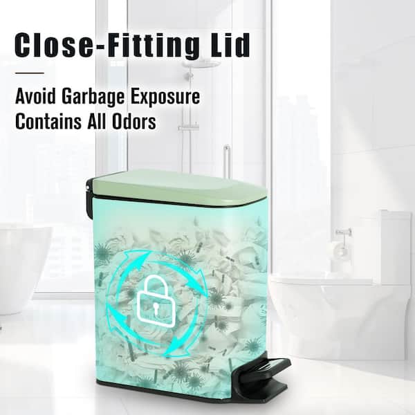 Bathroom 1.6 Gal. Matte Green Metal Household Trash Can Step Lid