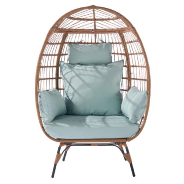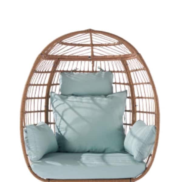 Blue Rattan Outdoor Oversized Wrecker Egg Chair with Steel Frame and 5 Cushions