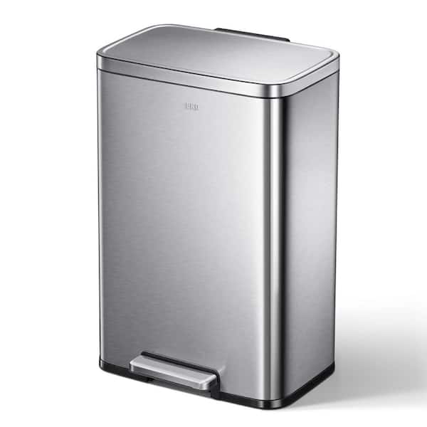 Indoor 13.2 Gal. Brushed Stainless Metal Household Trash Can Step Lid