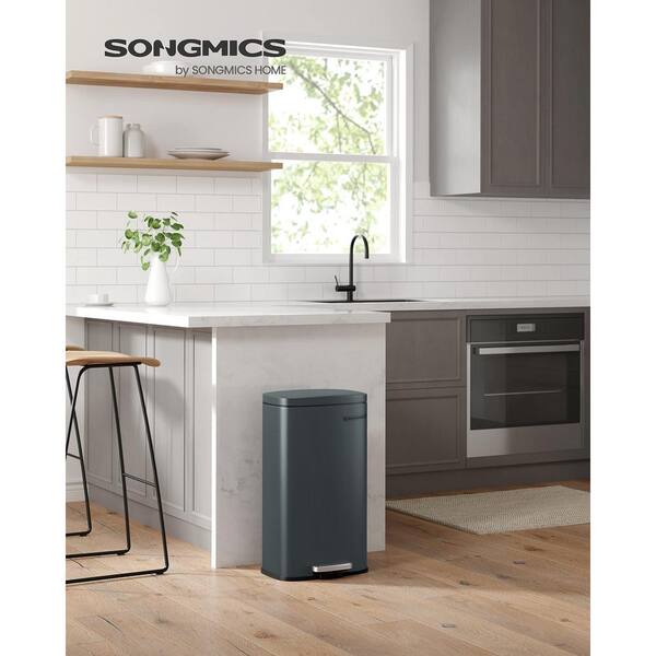 Kitchen 8 Gal. Greenish Gray Metal Household Trash Can Step Lid