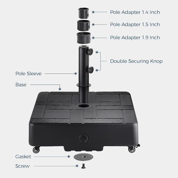 Patio Umbrella Base Stand with Wheels and 156 lbs. Heavy Duty Rolling Weights Capacity in Black