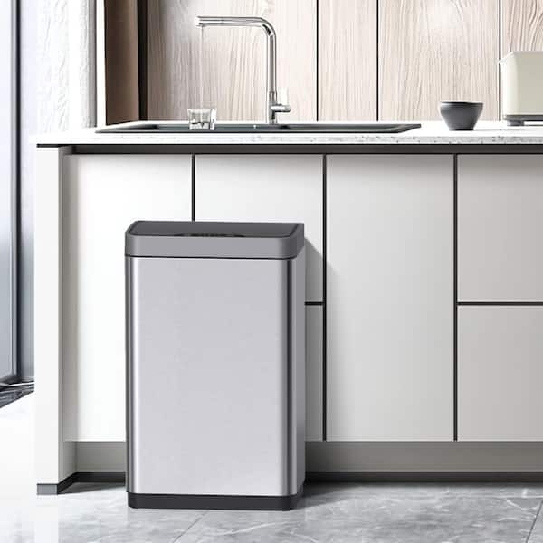 Smart 15.3 Gal. Silver Metal Household Trash Can Touchless Lid