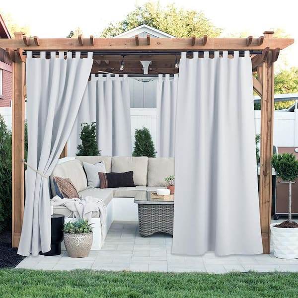 Waterproof Outdoor Patio Porch Curtain Self-Stick Tab Top Blackout Indoor Outdoor Dividers in Greyish White (Set of 2)