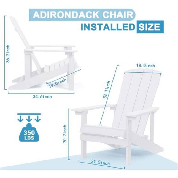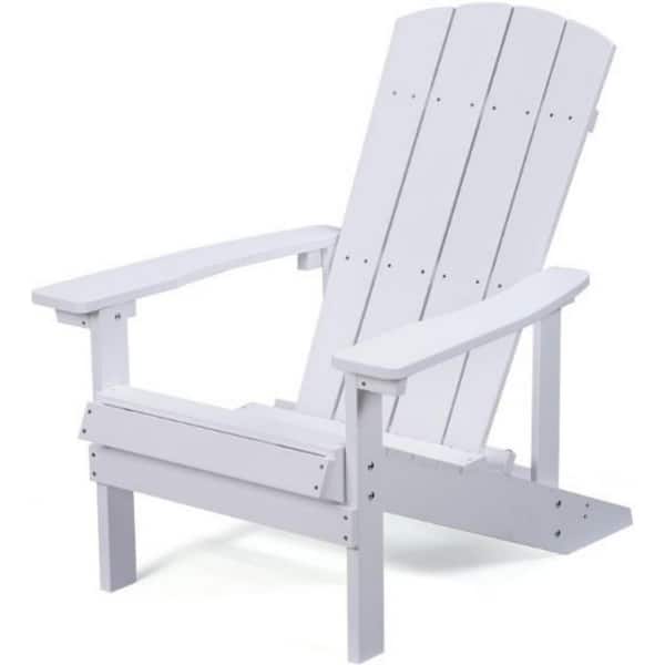 White Plastic Adirondack Chair Weather Resistant Furniture for Lawn Balcony (1-Pack)