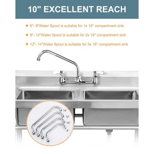 10 in. Commercial Faucet Swivel Spout Replacement in Polished Chrome with 1.8 & 2.2 GPM Aerator and G3/4 Internal Thread