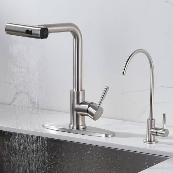 13.5 in. H Single Handle Pull Out Sprayer Kitchen Faucet w/ 360° Spout Swivel and Water Filter Faucet in Brushed Nickel