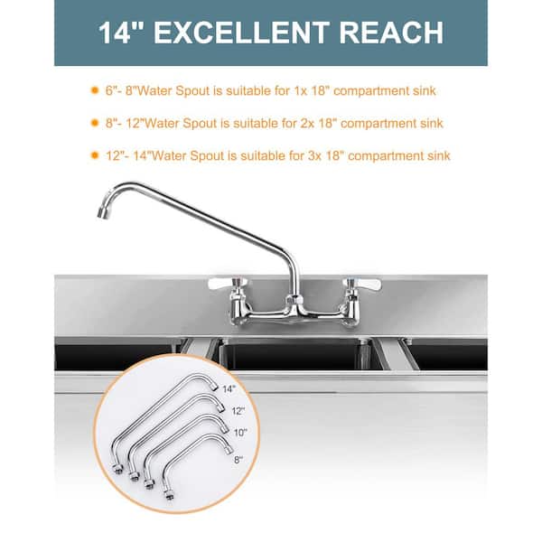 14 in. Commercial Faucet Swivel Spout Replacement in Polished Chrome with 1.8 & 2.2 GPM Aerator and G3/4 Internal Thread