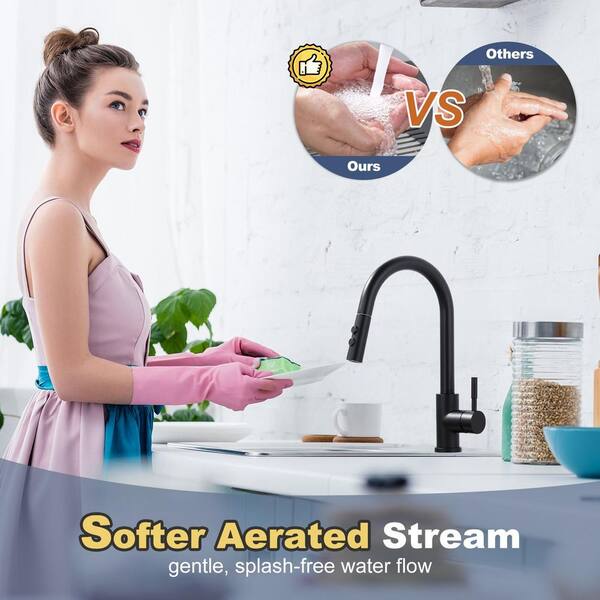 15.6 in. H 2-Mode Single Handle Pull Down Sprayer Kitchen Faucet with 360° Swivel Spout in Stainless Steel Matte Black