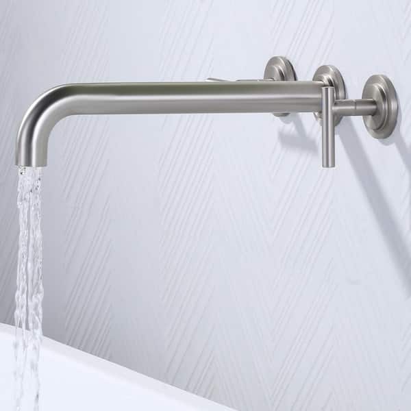 2-Handle 3-Hole Wall Mounted Brass Roman Tub Faucet with 360° Swivel Spout in Brushed Nickel