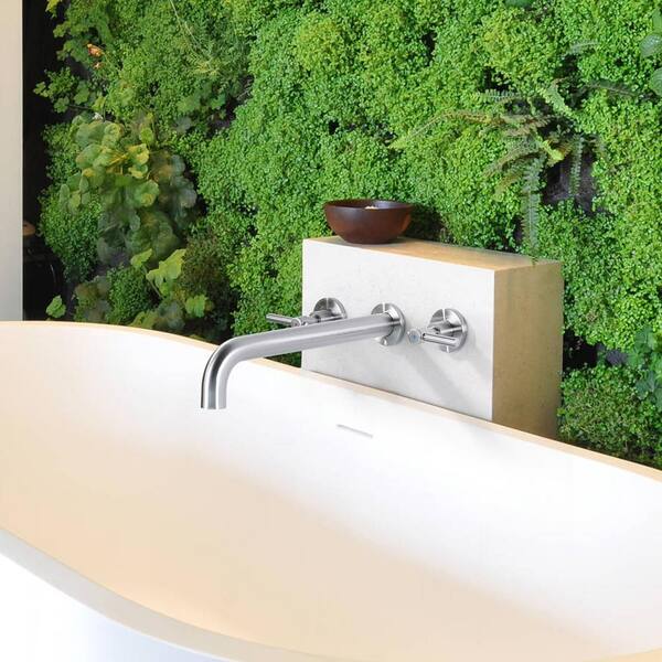 2-Handle Wall Mount Roman Tub Faucet with High Flow Rate and Long Spout in. Brushed Nickel
