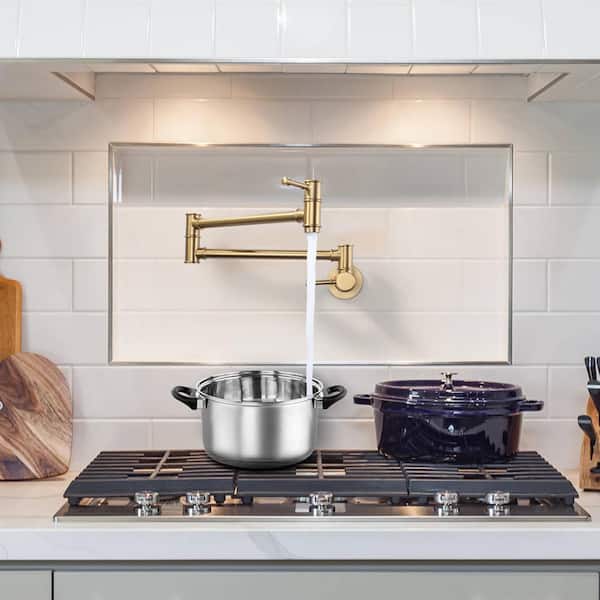 23.5 in. Wall Mounted Folding Pot Filler with Double Joint Swing Arm in Gold