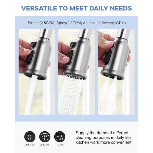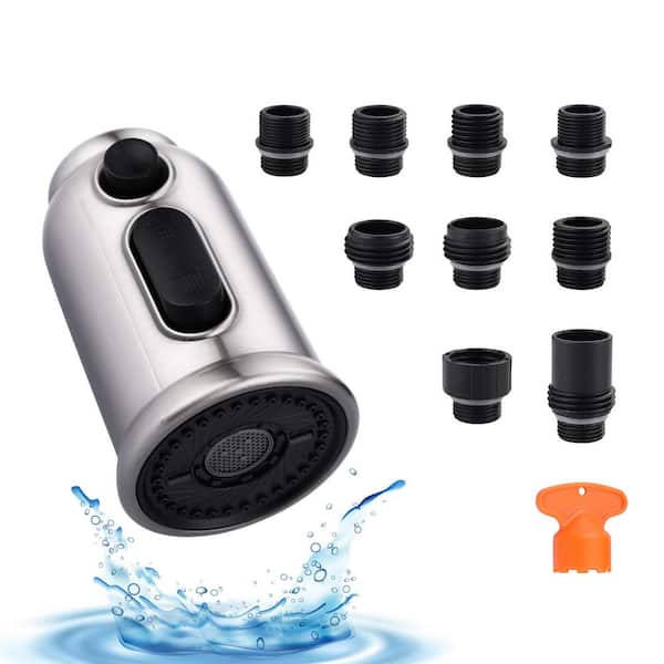 3-Function Pull Down Kitchen Faucet Spray Head Replacement with 9-Adapter Kit in Brushed Nickel