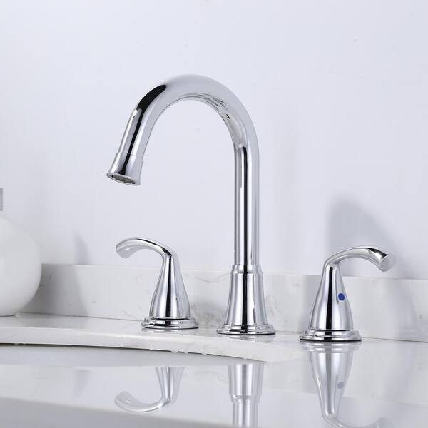 3 Hole 8 in. Widespread Double Handle Bathroom Faucet with Drain Kit Included in Polished Chrome