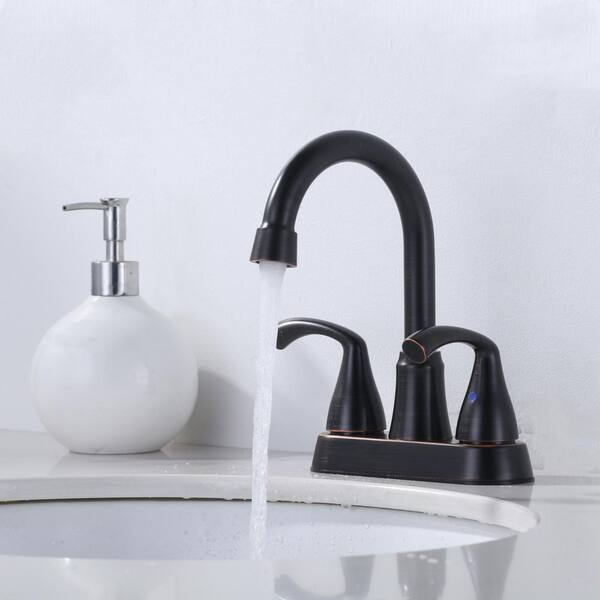 4 in. Centerset Double Handle High Arc 360° Swivel Bathroom Faucet with Drain Kit and Supply Lines in Oil Rubbed Bronze