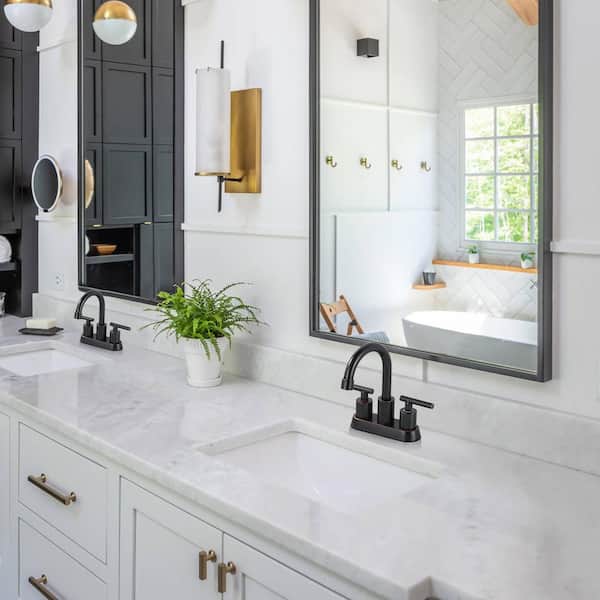 4 in. Centerset Double Handle Stainless Steel Bathroom Faucet with Drain Kit and 2 Water Supply Lines in Bronze