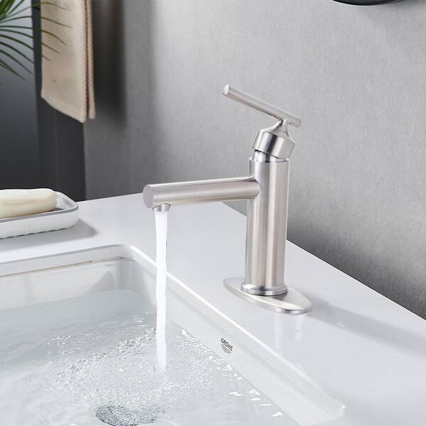 4 in. Centerset Single Handle High Arc Bathroom Sink Faucet with Drain Kit and Deckplate Included in Brushed Nickel