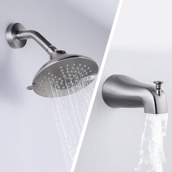 5-Spray Patterns with 1.8 GPM 6 in. Wall Mount Rain Fixed Shower Head with Tub Spout and Brass Valve in Brushed Nickel