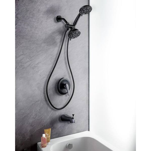 8-Spray 4 in. Wall Mounted Dual 2-in-1 Showerhead Fixed and Handheld Shower Head 1.8 GPM with Tub Spout in Matte Black