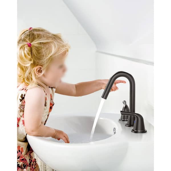 8 in. Widespread Double Handle Bathroom Faucet with Pop Up Drain and cUPC Certified Supply Lines in Matte Black